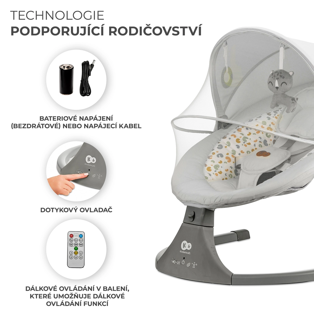 La hamaca Kinderkraft LUMI combina tecnología moderna y un diseño seguro para un descanso cómodo desde el nacimiento hasta 9 kg. Gracias al balanceo lateral, el bebé se siente como en brazos, mientras que el motor silencioso no interrumpe el sueño. Con conectividad Bluetooth y entrada USB podrás poner fácilmente nanas directamente desde el teléfono.