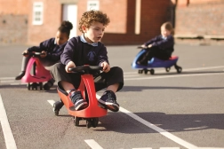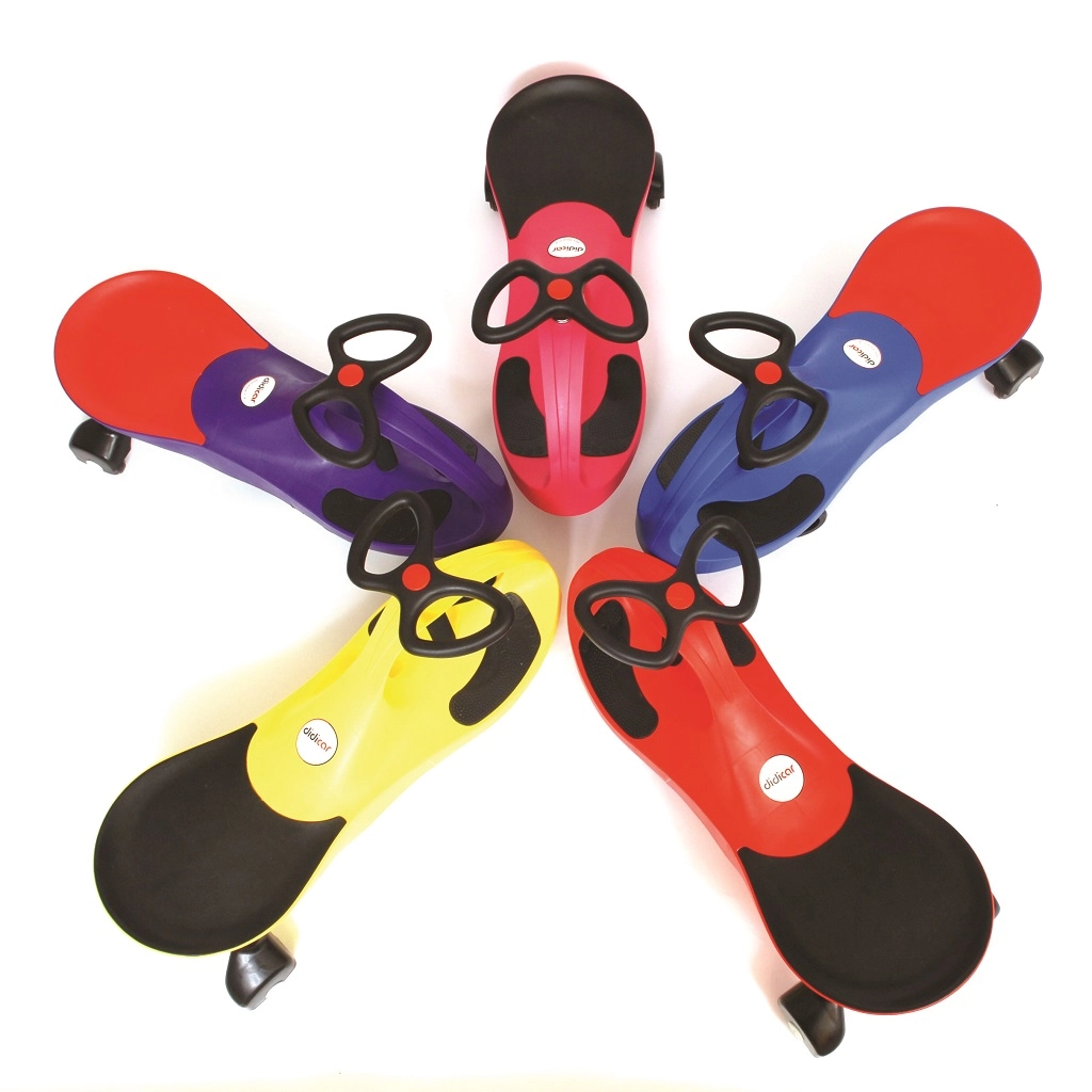 Didicar es un correpasillos único sin pedales que se pone en marcha solo girando el manillar a izquierda y derecha. No requiere mantenimiento complejo ni lubricación y ofrece una conducción fluida y segura en superficies planas y firmes como suelos, hormigón o asfalto. Es perfecto para entornos domésticos y de guardería.