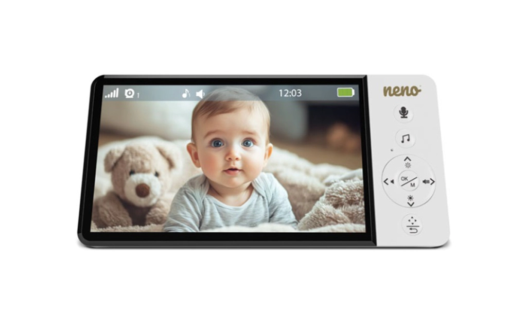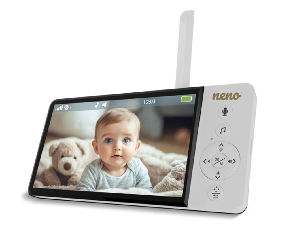 Mantén el control de tu bebé en casa y en el jardín. El vigilabebés Neno Ciao combina una nítida pantalla de 5" (480 × 854 px) con cámara giratoria Pan & Tilt, para cubrir toda la habitación con un toque. La visión nocturna de hasta 5 m asegura una imagen clara incluso tras el anochecer, y gracias a la comunicación bidireccional puedes calmar al bebé con tu propia voz.