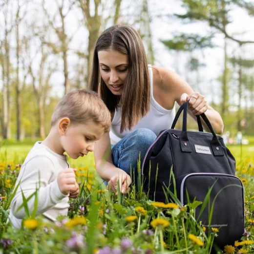 Disfruta de sus detalles bien pensados: dos bolsillos térmicos mantienen los biberones a la temperatura adecuada, un bolsillo impermeable separa de forma segura la ropa mojada, el cordón para llaves acelera la búsqueda y la cremallera trasera permite un acceso rapidísimo al compartimento principal. La mochila se fija fácilmente al cochecito o al asa del equipaje y, gracias al forro claro, siempre encontrarás rápido lo que necesitas.