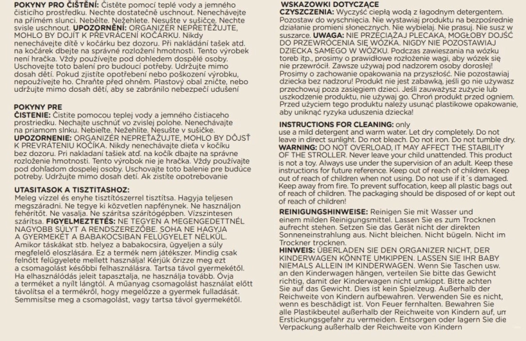 - No sobrecargar la bolsa en el cochecito; el producto no es un juguete; usar bajo la supervisión de un adulto
