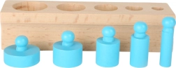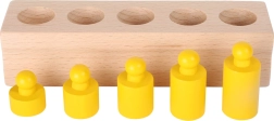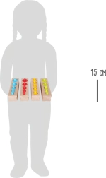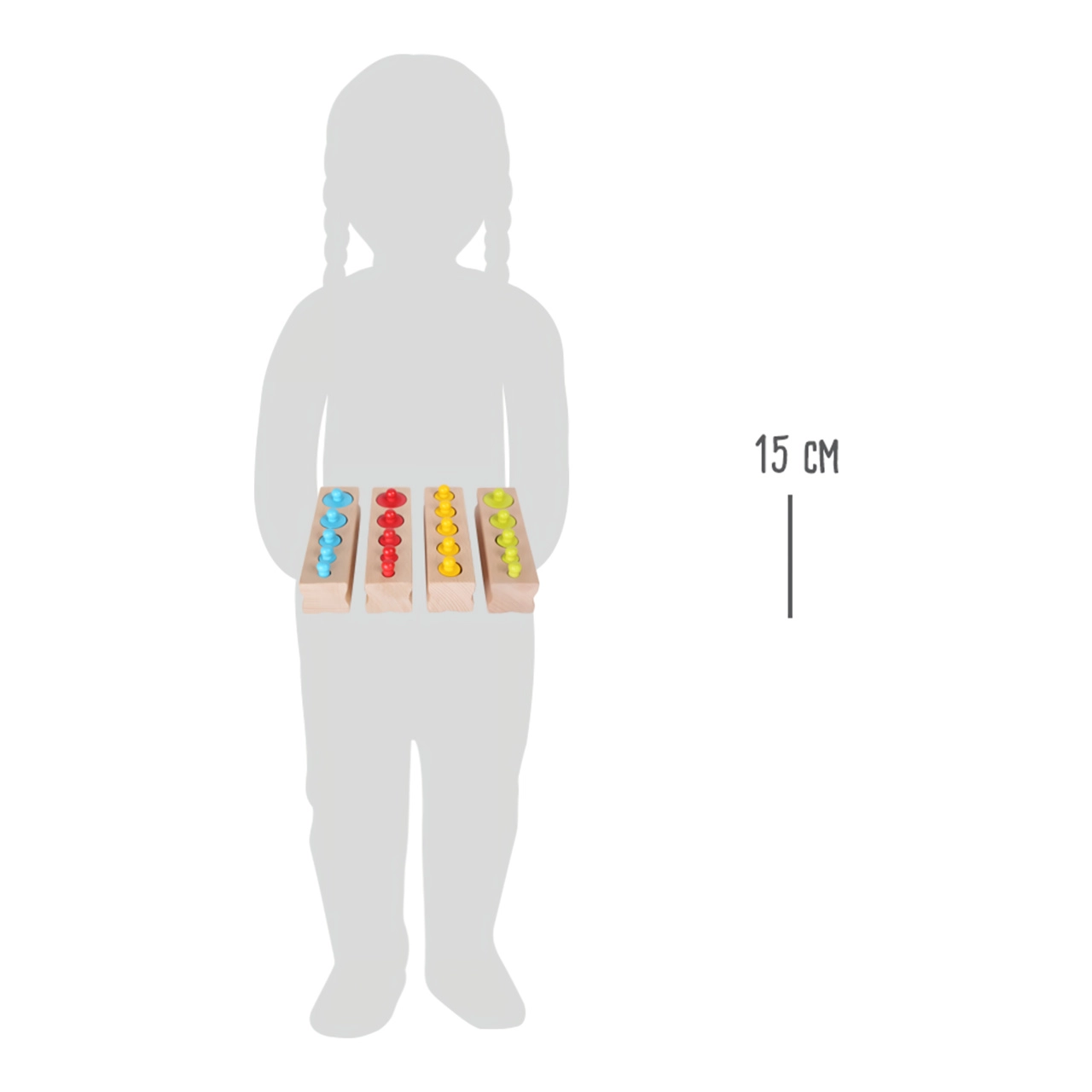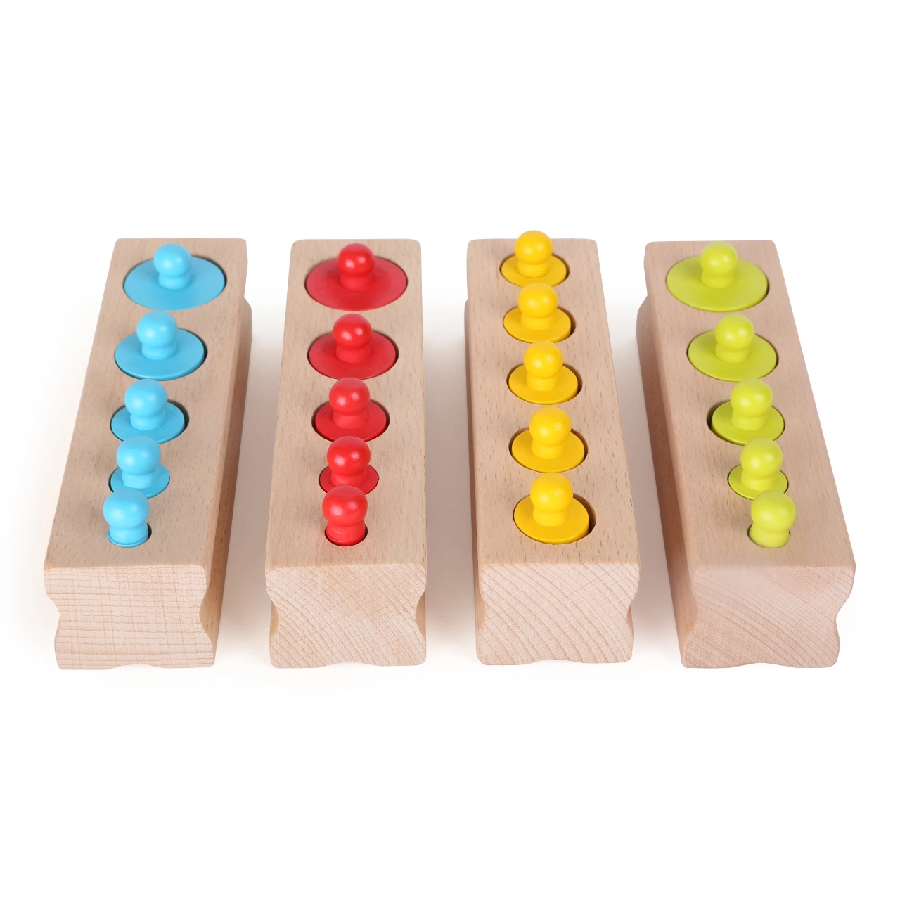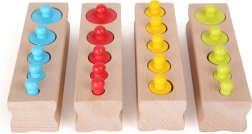 Los cilindros de colores de madera ayudan a los niños a comprender patrones y a tomar decisiones sobre la colocación correcta.