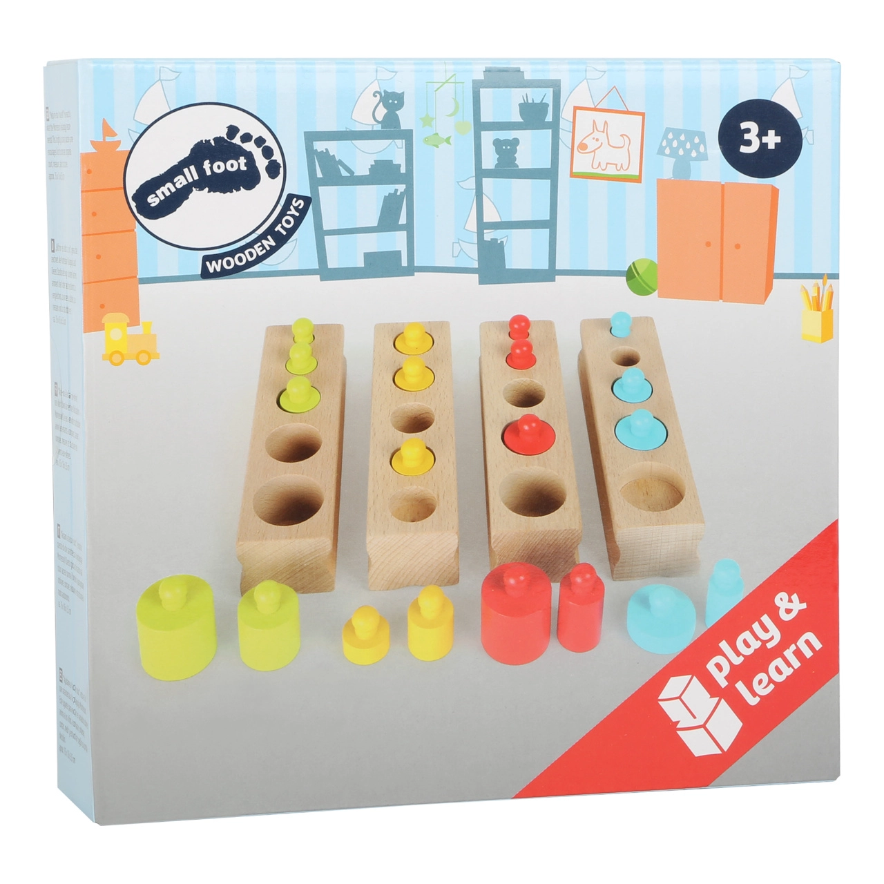 Damos la bienvenida a todos los pequeños exploradores que desean desarrollar sus habilidades con el rompecabezas de cilindros de madera de Small Foot. Este juguete está fabricado con madera maciza de alta calidad y ofrece una forma sencilla pero eficaz de estimular el intelecto y la personalidad de sus hijos.