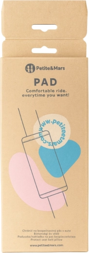 Se entrega en un embalaje resistente de PETITE&MARS. Colocación simple en la mayoría de los cinturones de seguridad en cuestión de segundos.