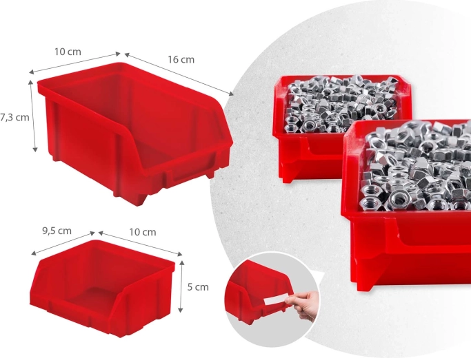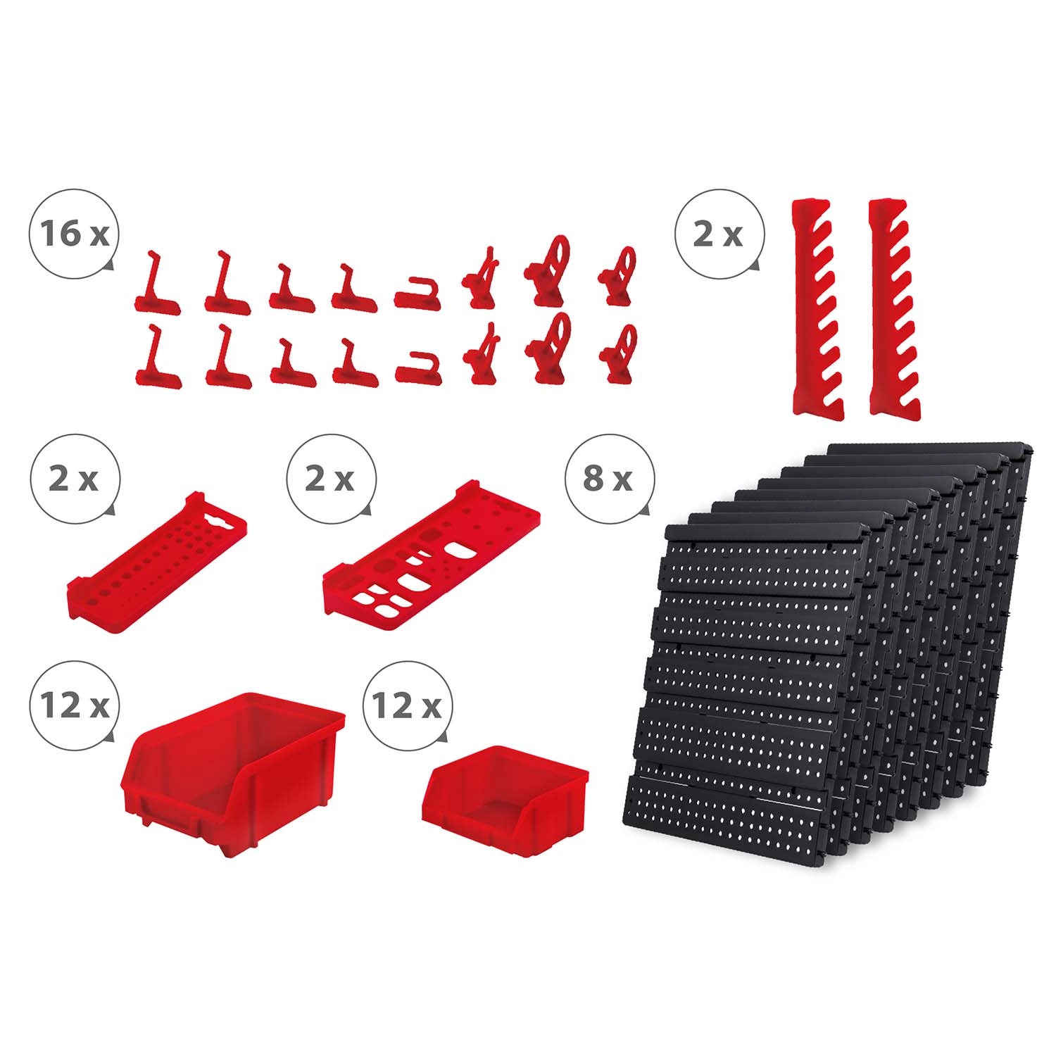 12 cajetines pequeños y 12 grandes para tornillos y tirafondos, 16 ganchos y soportes más 2 soportes para llaves: clasificación fácil y acceso rápido.