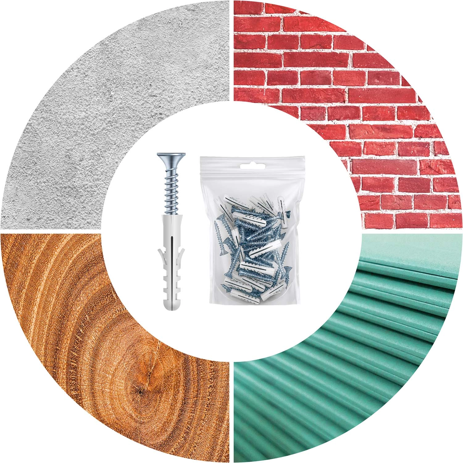 El paquete incluye tacos universales aptos para hormigón, ladrillo, madera y chapa. Fijación rápida y estable de los paneles.