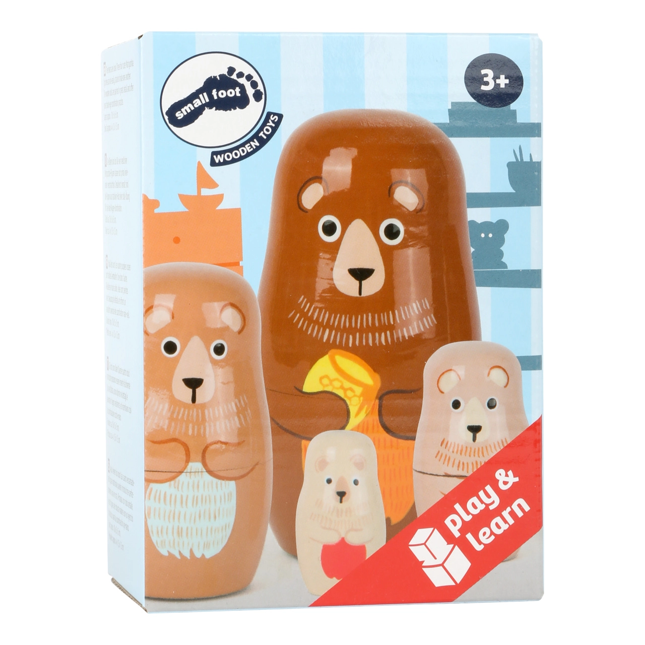 Esta clásica matrioshka de madera representa a una mamá osa con sus oseznos, que se van escondiendo uno dentro de otro según su tamaño. Los niños practican la paciencia, la lógica y la destreza, y al mismo tiempo disfrutan descubriendo quién se oculta dentro.
