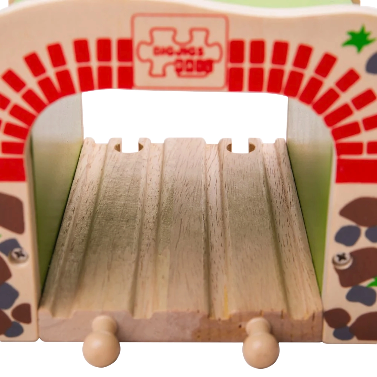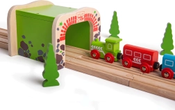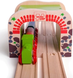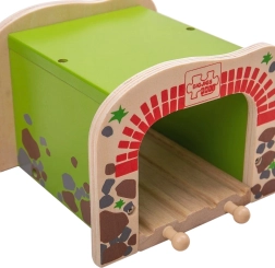 El túnel se integra fácilmente en la vía existente. Es compatible con las vías y trenes de madera más populares de distintas marcas.