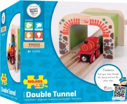 El túnel doble de madera BIGJIGS RAIL aporta más acción y un funcionamiento más fluido al mundo de los trenes de madera. Gracias al paso de doble vía, pueden pasar dos trenes a la vez, lo que fomenta el juego conjunto y el desarrollo de la coordinación. Su estructura sólida y el atractivo motivo de ladrillo y piedra aportan un aspecto realista a la vía.