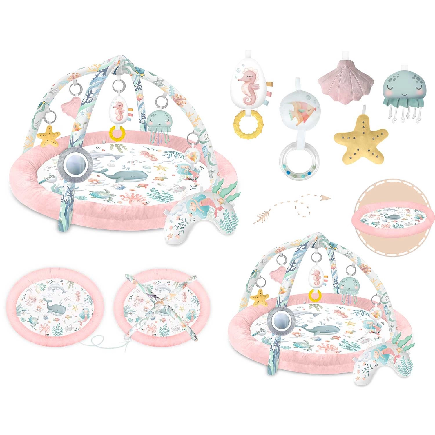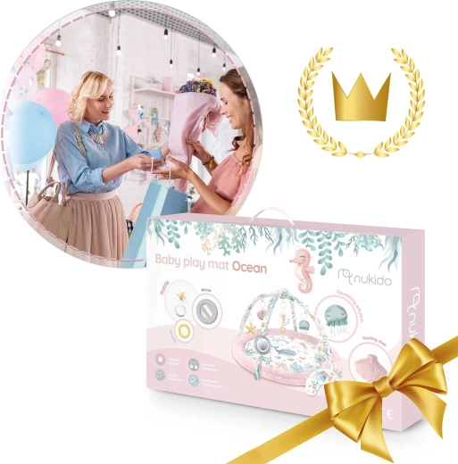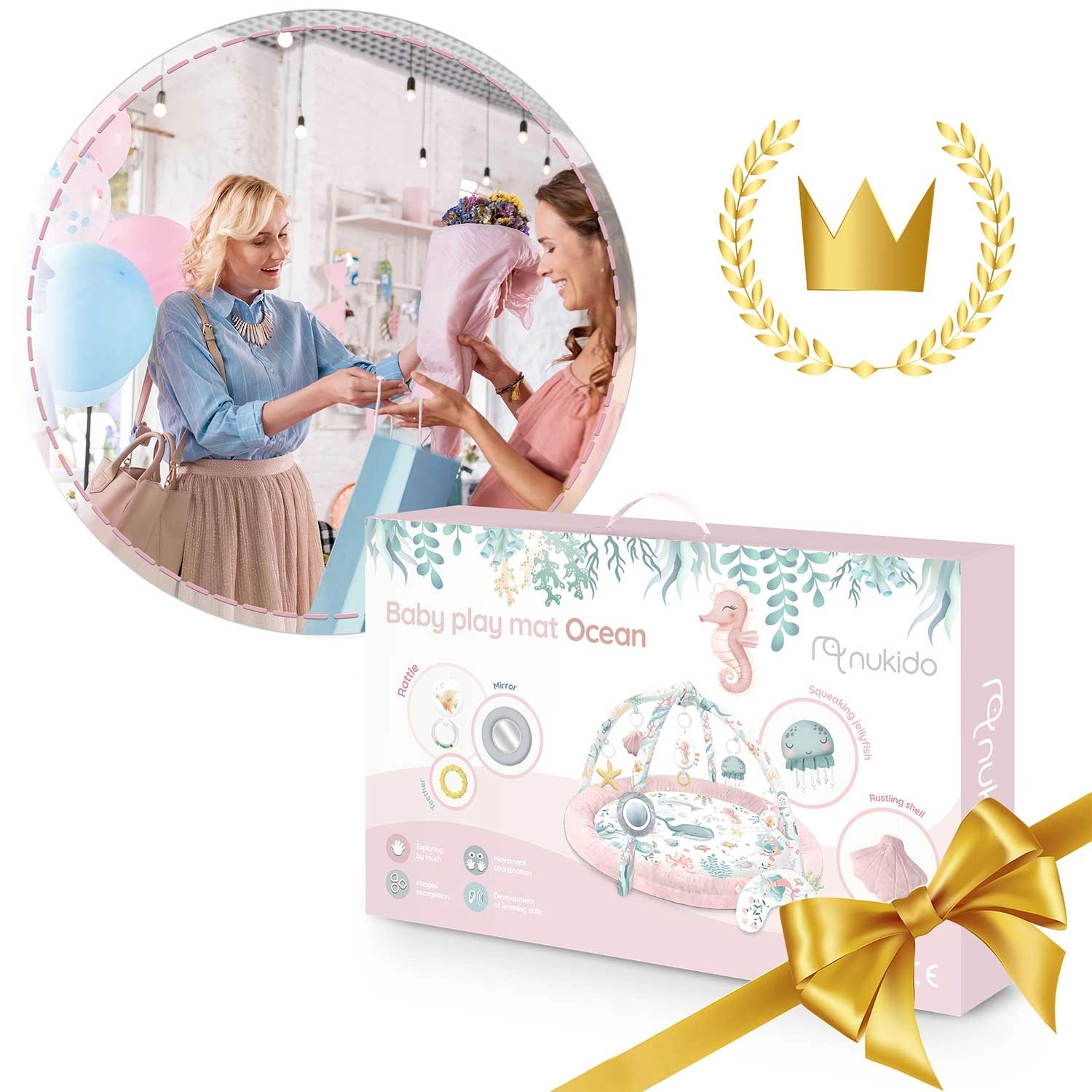 Descubre la manta de juego para bebés Nukido Ocean en color rosa, suave y segura, que combina el desarrollo sensorial, el apoyo a la coordinación y la comodidad durante el tummy time. Dos arcos desmontables con 7 juguetes multifuncionales (espejo, pito, sonajeros y elementos crujientes) motivan a agarrar y explorar. Plegado fácil, material suave y lavable y cojín de apoyo hacen de esta manta un centro de actividades ideal desde los primeros meses.