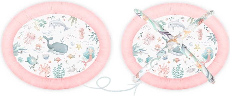 La manta de juego Nukido Ocean – rosa crea un entorno acogedor y seguro para el juego y el descanso diario. Los arcos desmontables con coloridos motivos marinos y juguetes colgantes apoyan de forma natural el desarrollo de la vista, el tacto y la motricidad. Gracias a su superficie suave, resistente y fácil de limpiar, la manta está lista para la aventura diaria.