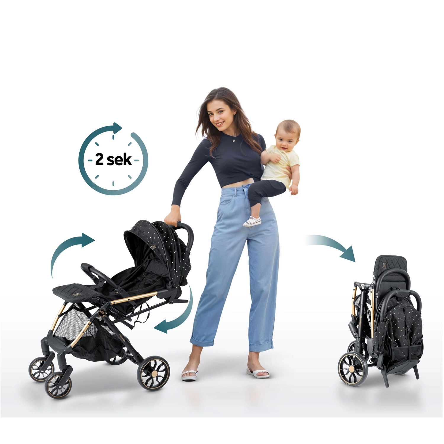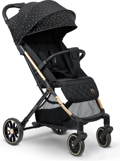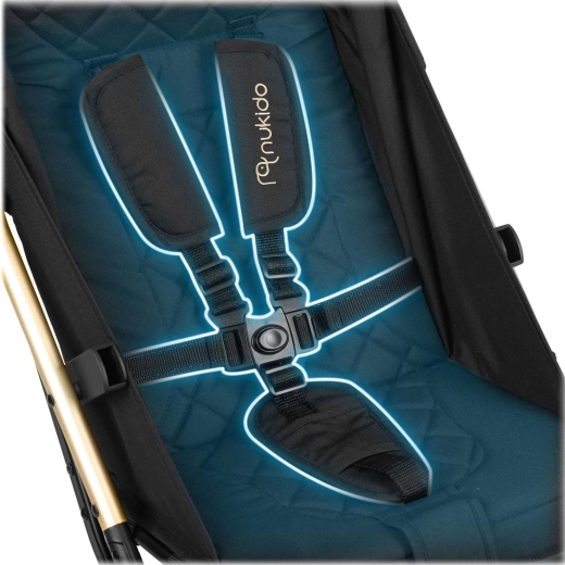 El cochecito Nukido Paseo, ligero y resistente, es un compañero fiable para paseos diarios y viajes con niños de hasta 36 meses. Ofrece plegado rápido con una mano en 2 segundos, ruedas delanteras giratorias 360° con suspensión, grandes ruedas traseras para terrenos irregulares y arnés de seguridad de cinco puntos. Gracias a sus dimensiones compactas plegado, cabe en el maletero y es apto también para avión. La capota extensible con protección contra la lluvia y los rayos UV, el respaldo reclinable hasta posición horizontal y el reposapiés ajustable garantizan la comodidad del niño en cualquier clima.