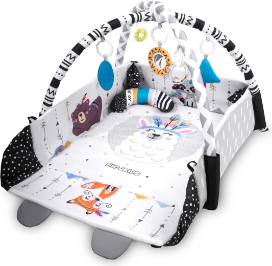 - Uso flexible 3 en 1: alfombra abierta, nido acogedor con laterales elevados o centro de juego con arcos.