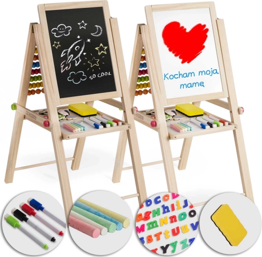 Esta pizarra infantil multifuncional Ricokids fomenta la imaginación, la motricidad fina y los primeros pasos en el conteo y la escritura. El diseño de doble cara combina el lado de tiza para dibujar y expresar emociones con el lado magnético borrable en seco para escribir con rotulador y trabajar con imanes. Gracias a su estructura en A estable y a materiales seguros, es ideal para el dormitorio infantil, la sala de juegos y el preescolar.