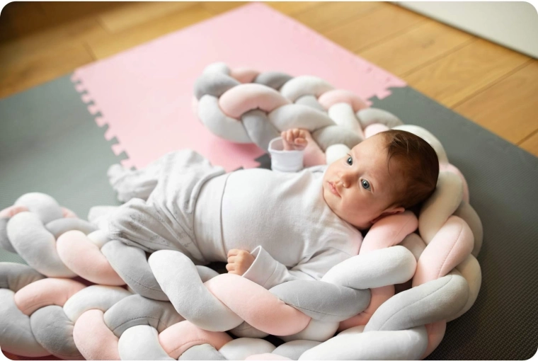 El denso acolchado en forma de trenza protege al bebé de los barrotes de la cuna, de las corrientes de aire y de los huecos, creando un entorno acogedor y tranquilo para dormir y jugar.