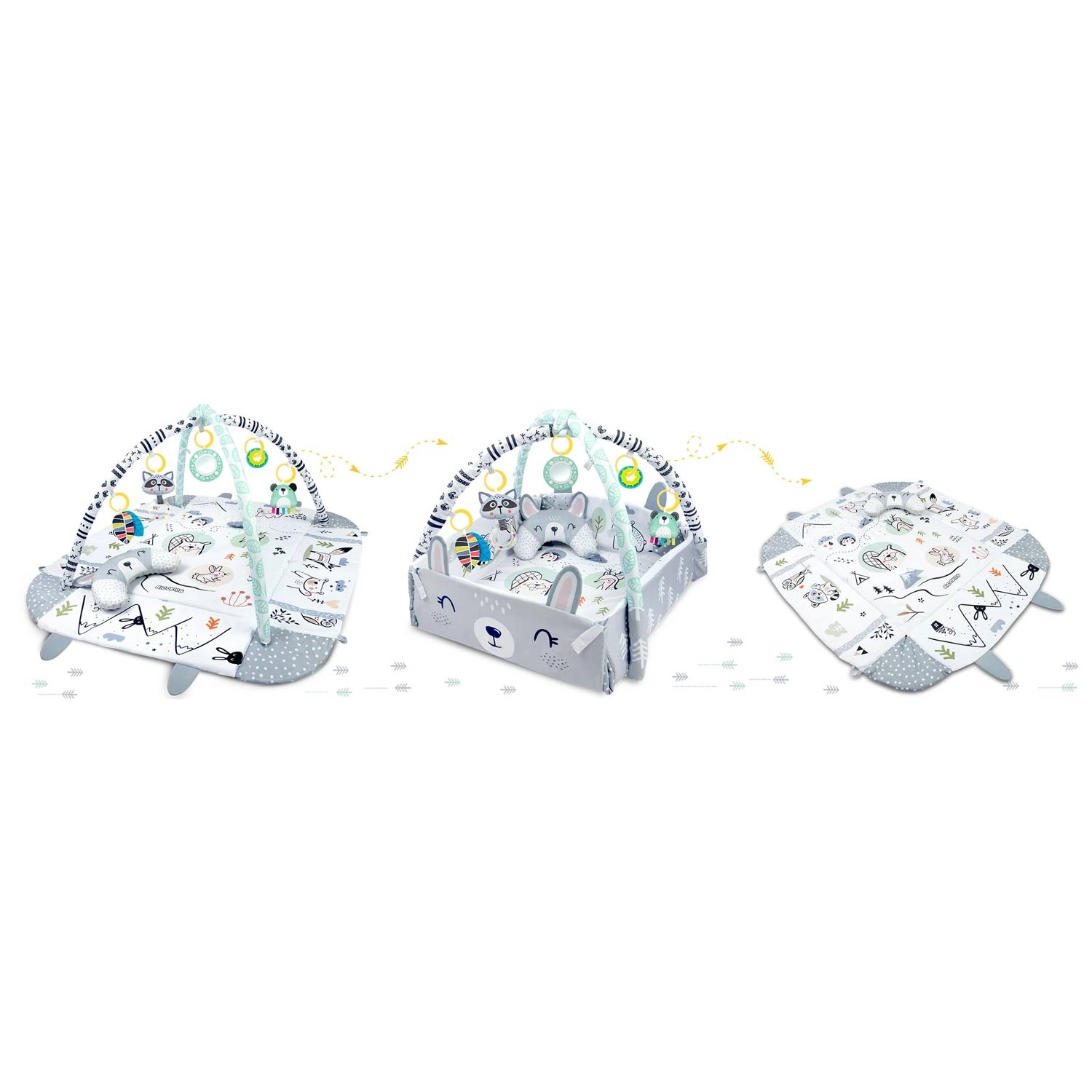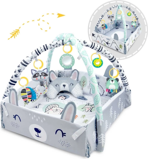 Los suaves laterales elevables y los arcos cruzados permiten cambiar rápidamente la disposición según la edad y la actividad del bebé. Un espacio seguro para tumbarse, jugar y hacer tummy time.