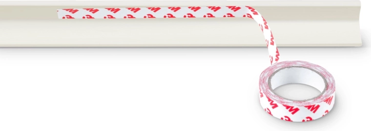 Incluye una cinta adhesiva de doble cara 3M de gran adherencia. Solo hay que desengrasar la superficie, retirar la lámina protectora y presionar: una solución limpia y rápida sin taladrar.