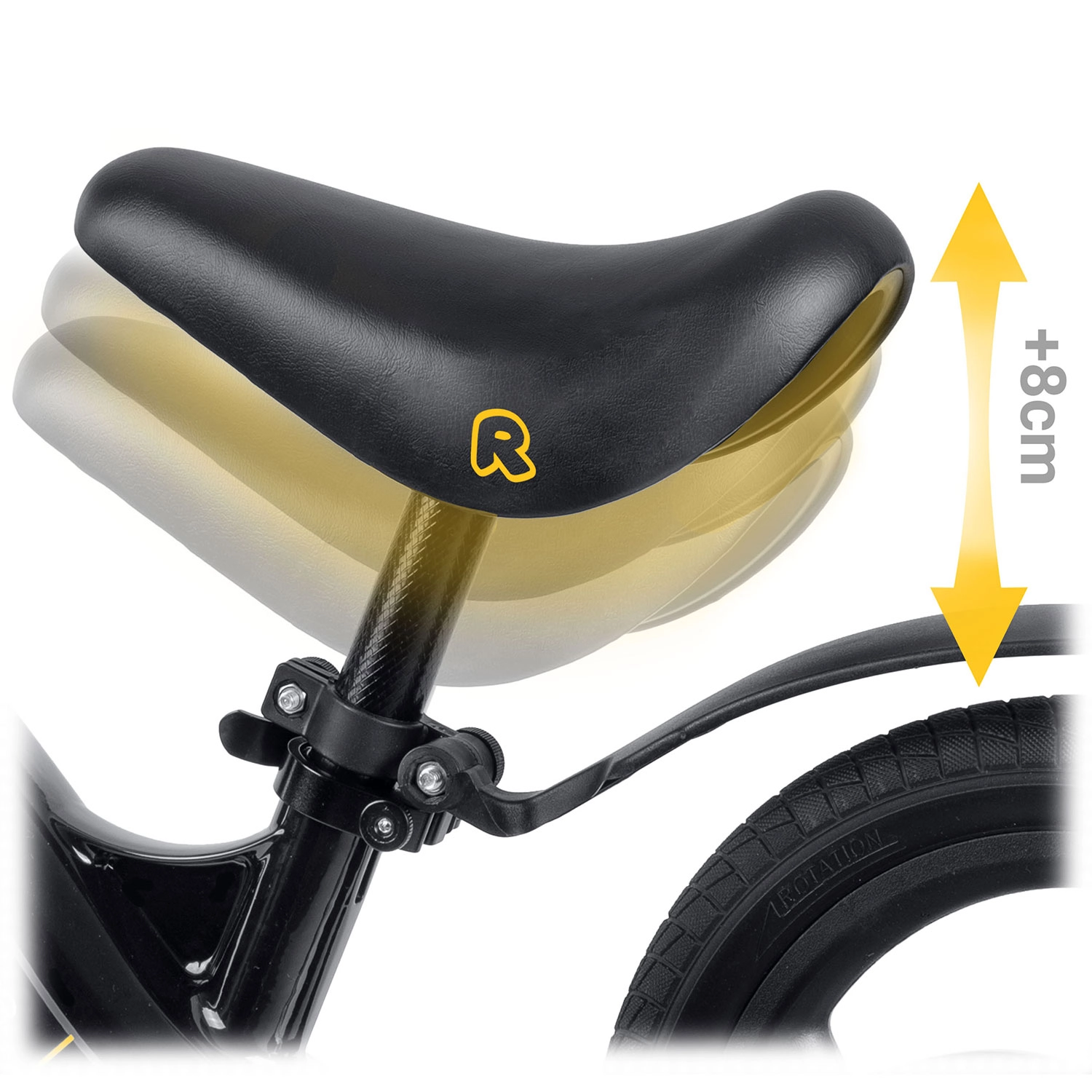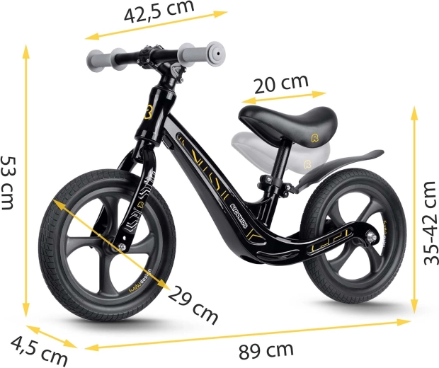 El sillín ergonómico y suave, con un rango de ajuste de aprox. 35–42 cm, se adapta fácilmente a la altura del niño y garantiza una postura cómoda en cada fase de aprendizaje.