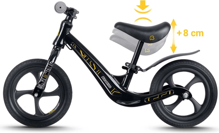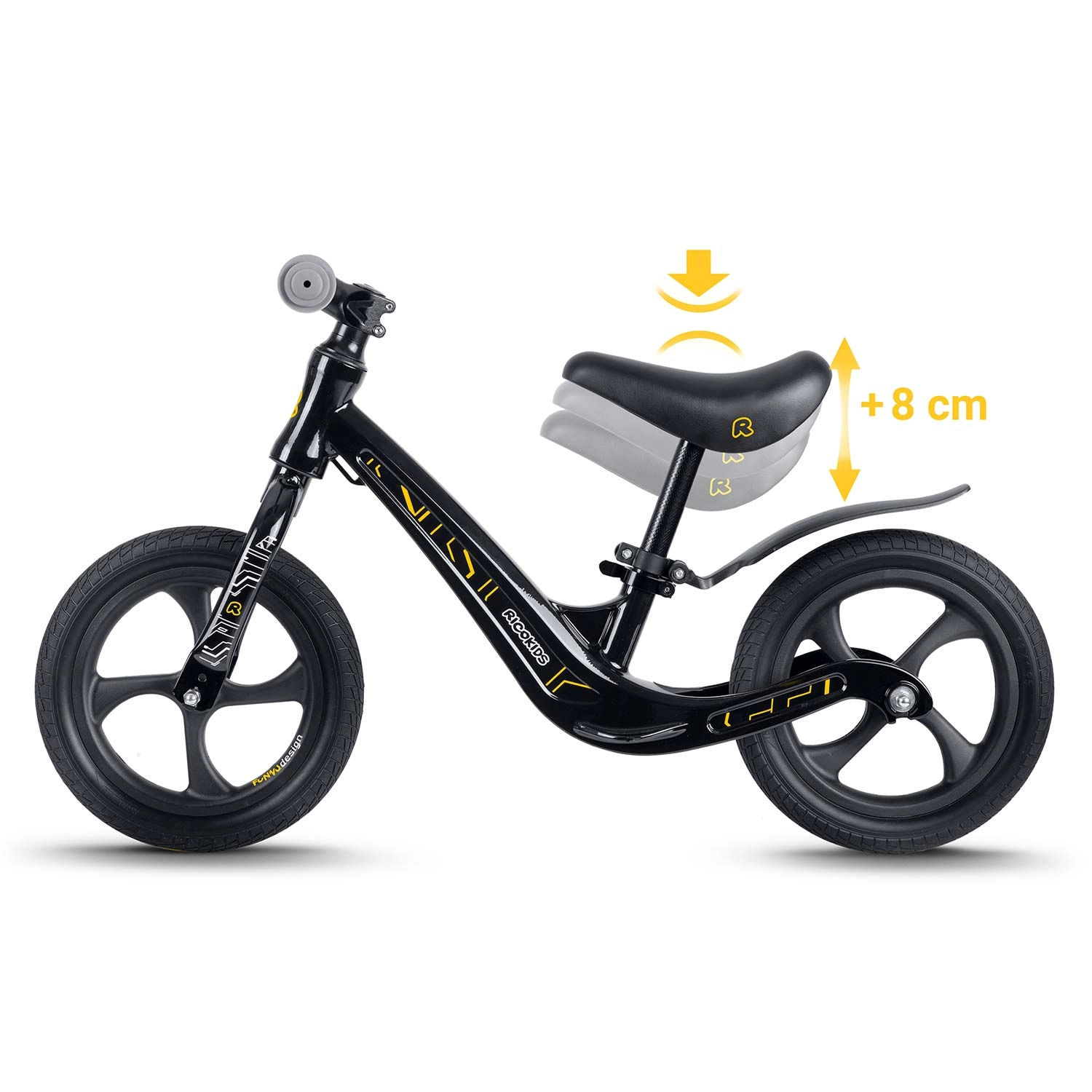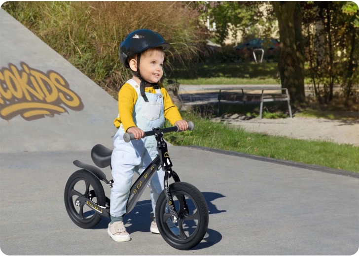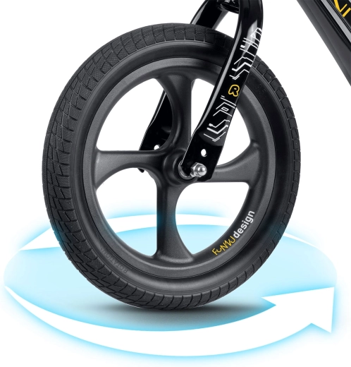 Ricokids Funnu es una bicicleta sin pedales para niños diseñada para un aprendizaje cómodo de la conducción sin pedales. Gracias al cuadro de magnesio ultraligero es fácil de transportar, mientras que el sillín ergonómico y suave con ajuste continuo asegura una postura perfecta para el crecimiento del niño. Las ruedas de espuma EVA no requieren mantenimiento, son a prueba de pinchazos y amortiguan perfectamente las irregularidades, sin riesgo de pinchazo.