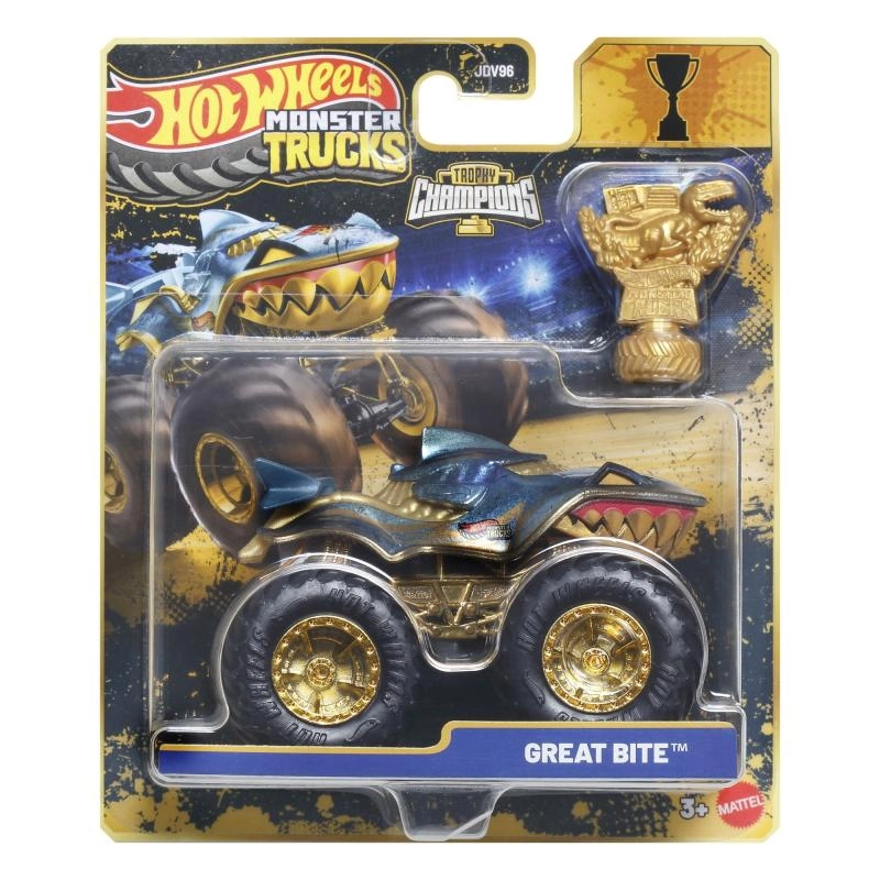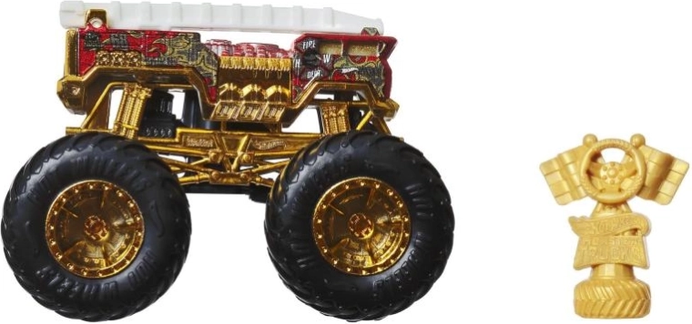El paquete incluye un trofeo dorado de Hot Wheels Monster Trucks Live: ideal para historias de carreras y una exhibición espectacular.
