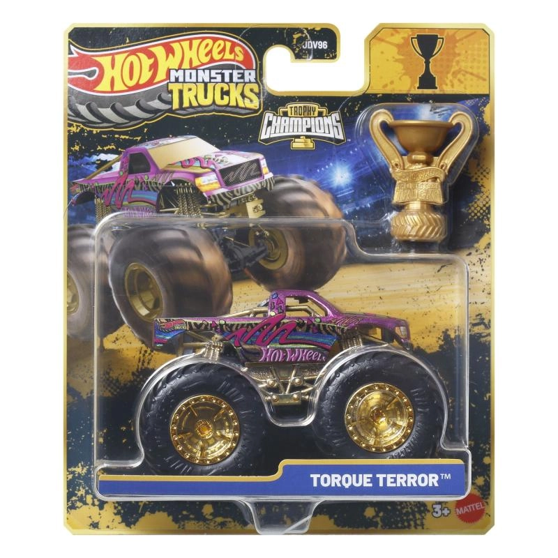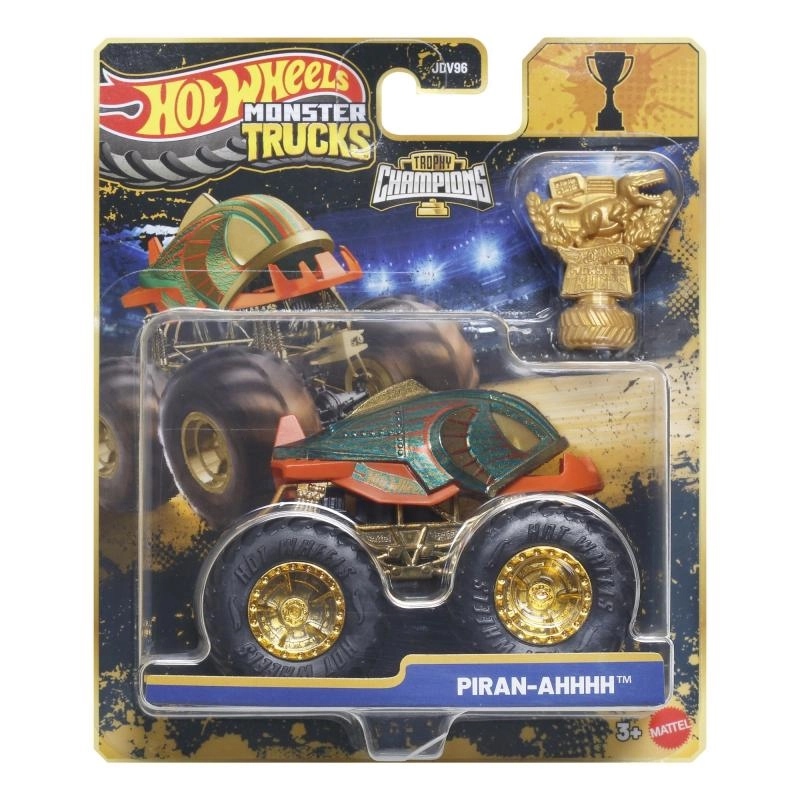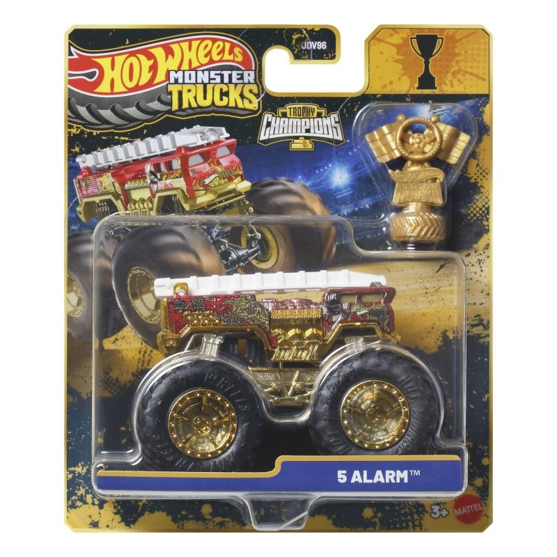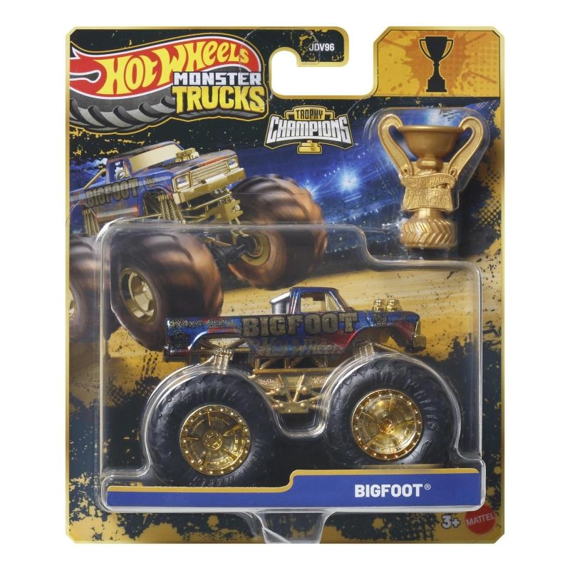 La colección conmemorativa especial Hot Wheels Monster Trucks Trophy Champions presenta el icónico BIGFOOT con un acabado premium. La construcción robusta, las grandes ruedas con perfil y los detalles dorados realzan su look legendario, mientras que el trofeo incluido aporta la atmósfera perfecta a cada carrera. El modelo es ideal tanto para jugar como para exhibir en una colección.