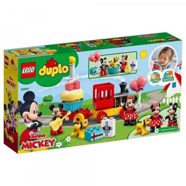 ¡Celebra el cumpleaños con los icónicos héroes de DISNEY! El tren de cumpleaños LEGO DUPLO con MICKEY MOUSE, MINNIE y PLUTO ofrece aprendizaje divertido de los números, desarrollo de la motricidad fina y construcción creativa. El colorido conjunto con números, pastel y accesorios fomenta la imaginación y las habilidades sociales de los más pequeños.