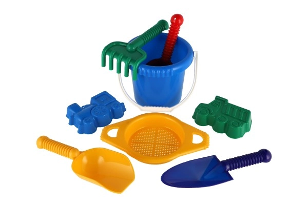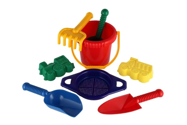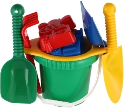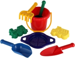 Incluye todas las herramientas necesarias para construir y jugar de forma creativa en la arena: cubo, tamiz, palitas, rastrillos y dos moldes.