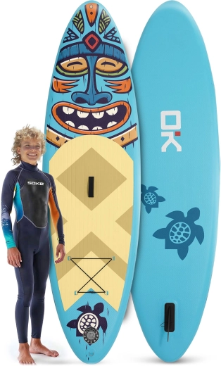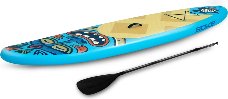 Descubre el paddleboard inflable Soke, ligero y estable, para niños, adolescentes y adultos más ligeros. El set completo incluye todo lo necesario: remo ajustable, bomba de doble acción con manómetro, leash de seguridad, quilla desmontable, asiento de apoyo, kit de reparación y mochila resistente. La almohadilla EVA antideslizante, la construcción drop-stitch y el sistema elástico frontal tipo bungee para transportar tus cosas garantizan diversión y seguridad en el agua.