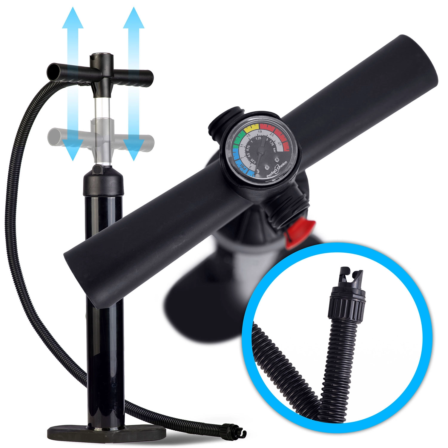 - Doble acción (bidireccional) con manómetro
