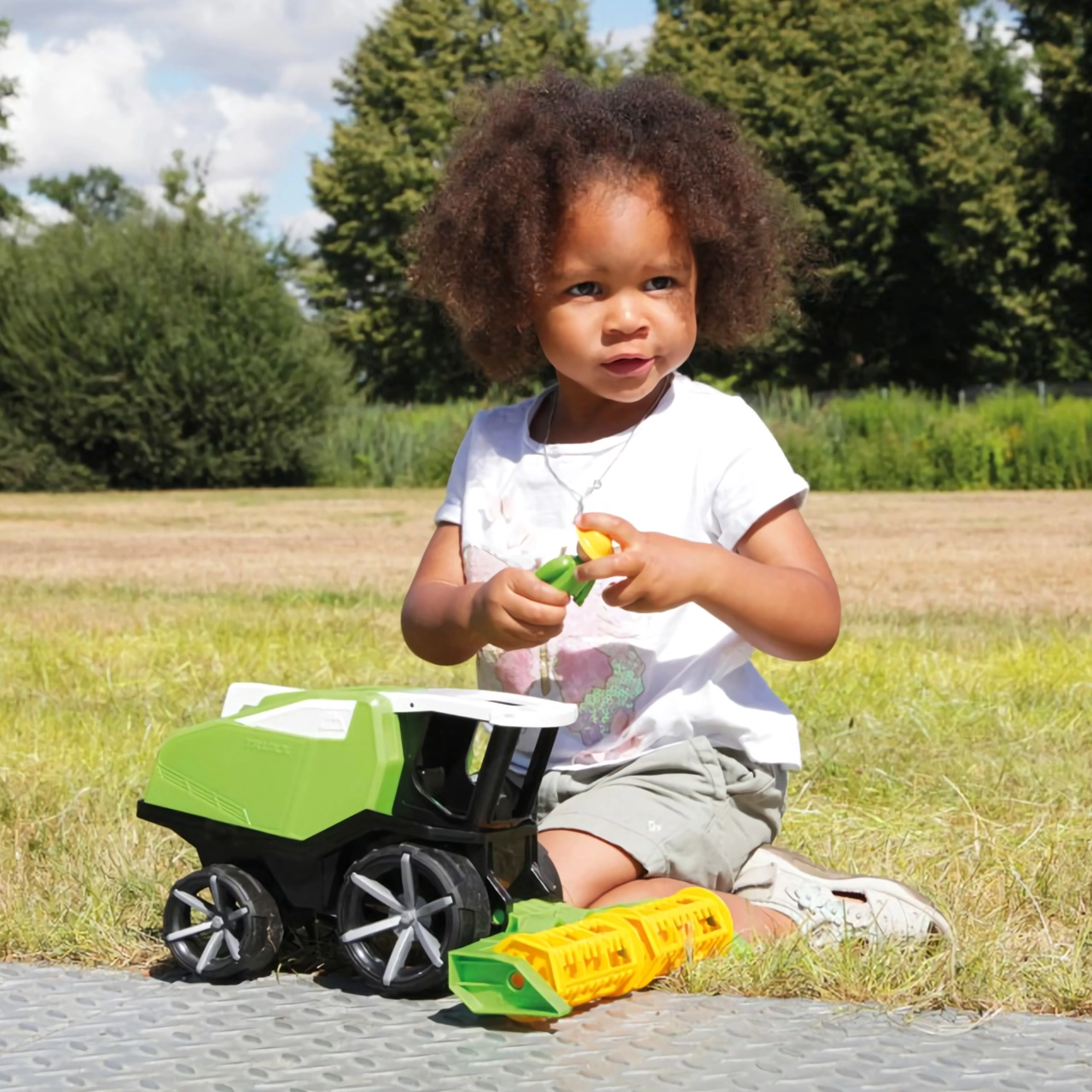 La moderna cosechadora infantil de la serie TRUXX 2 ofrece un diseño sólido y resistente, ideal para exterior y para el arenero. Incluye una figura de conductor, techo de la cabina abatible y partes móviles que reproducen fielmente las funciones de una máquina real. Fabricado con plástico inocuo en la República Checa.