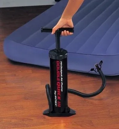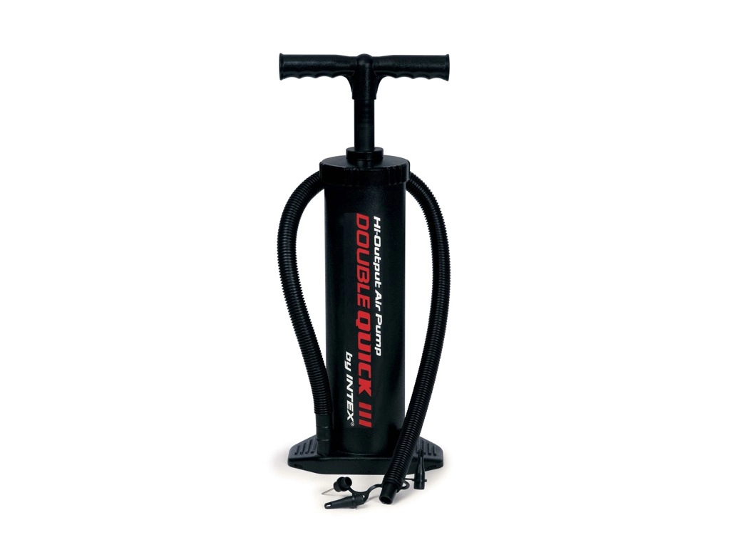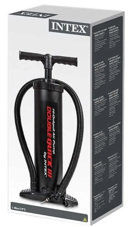 La Intex Double Quick III es una práctica bomba manual diseñada para un inflado rápido y cómodo. El mecanismo de doble acción impulsa aire tanto al subir como al bajar, lo que acorta significativamente el tiempo de inflado y ahorra esfuerzo. Su construcción firme con apoyo para el pie mantiene la bomba en su sitio incluso durante un uso intenso.