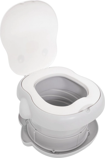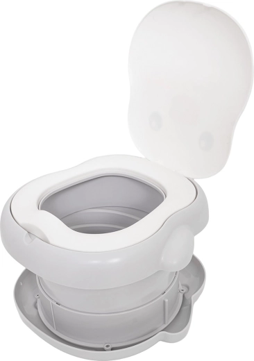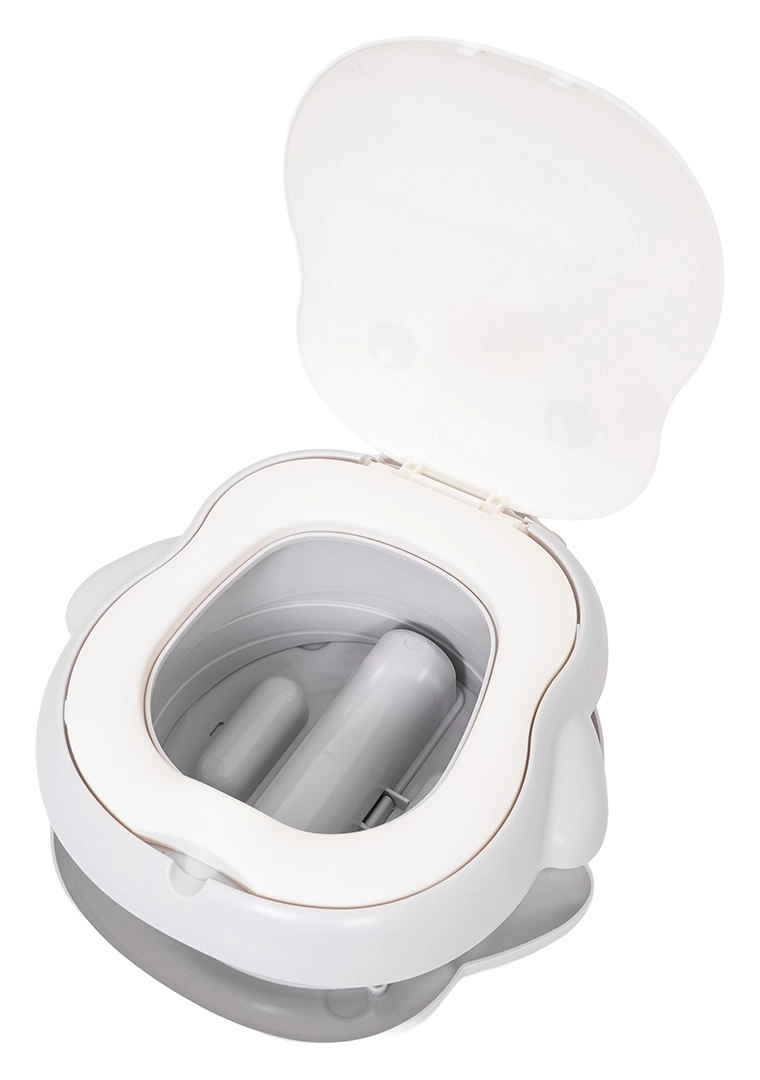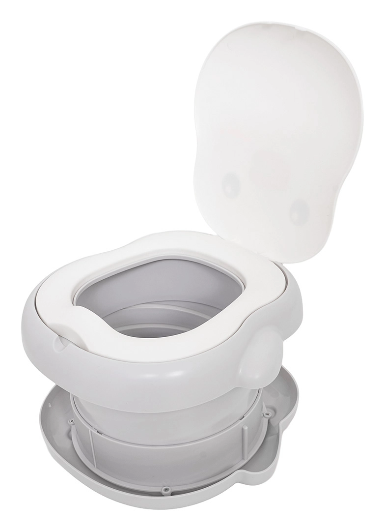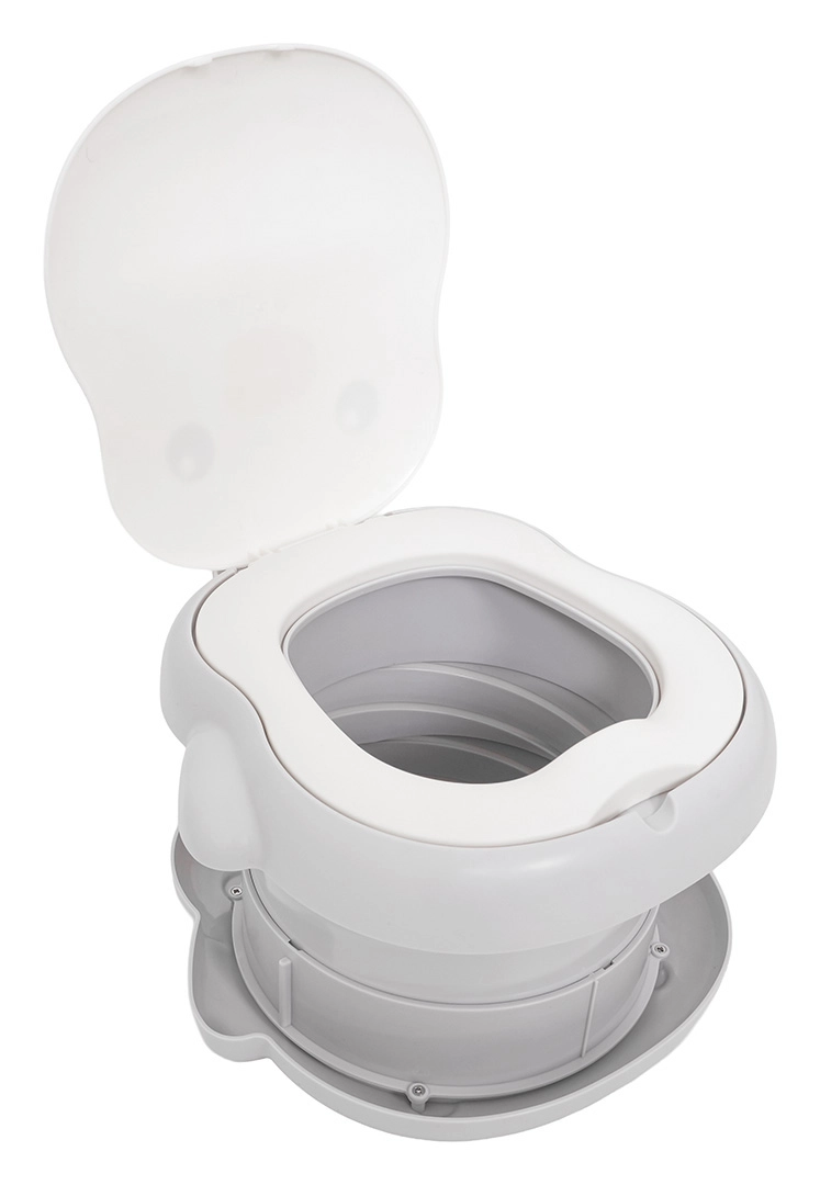 Orinal de viaje compacto e higiénico para niños con plegado/desplegado rápido, limpieza sencilla y base antideslizante. Incluye rollo de bolsas desechables y compartimento de almacenamiento en la base del orinal, además de bolsa de transporte. Solución ideal para viajes y excursiones, minimiza el estrés en situaciones de emergencia.