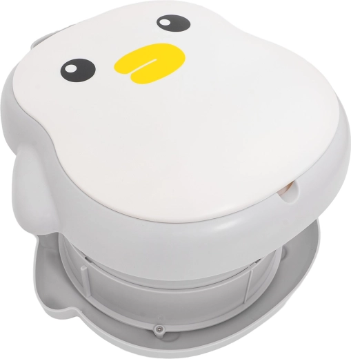 El aspecto amistoso con ojitos y pico fomenta un hábito positivo con el orinal y hace más agradable el aprendizaje para ir al baño.