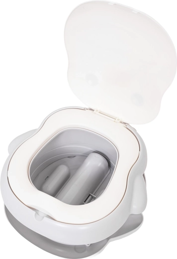 Práctico orinal portátil con forma de simpático pingüino, diseñado para un uso cómodo en casa y durante los viajes. El plástico resistente, las superficies lisas y las piezas extraíbles permiten un mantenimiento rápido y la máxima higiene. Gracias a sus dimensiones compactas y al asa, se lleva fácilmente en el coche, carrito o mochila.