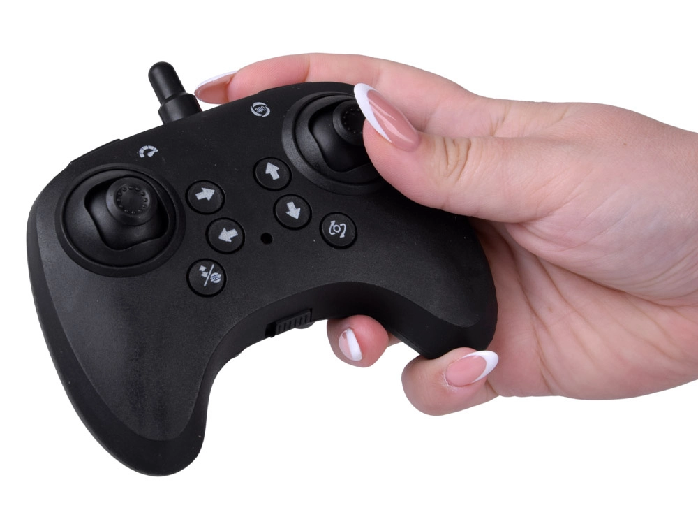El mando tipo gamepad ofrece control preciso de movimiento arriba/abajo, adelante/atrás, izquierda/derecha, y con un solo botón activa giros de 360° y despegue/aterrizaje. El dron puede orbitar alrededor de un punto y realizar giros fluidos, para disfrutar de un vuelo dinámico y acrobacias llamativas.