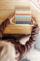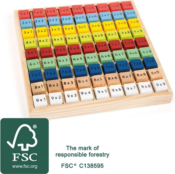 Los coloridos cubos de madera con ejercicios motivan a los niños a explorar y repetir la tabla de multiplicar cada día.