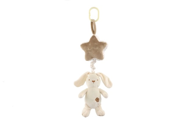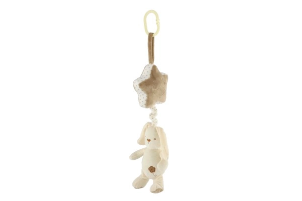 El conejo de peluche se puede fijar fácilmente a la cuna o al cochecito gracias a su práctico clip.