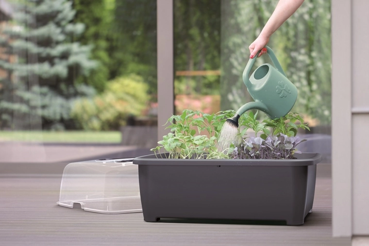 Esta regadera ligera y resistente ofrece la combinación ideal de capacidad de 4,5 litros y manejo cómodo. El cuello largo con rociador genera una dispersión de agua suave y uniforme, que protege flores y plántulas jóvenes. La roseta desmontable permite cambiar rápidamente de lluvia fina a chorro directo.