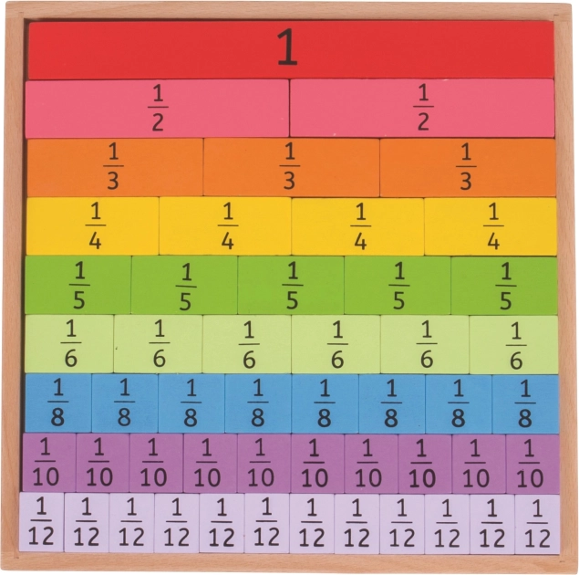 Una ayuda divertida y educativa para pequeños matemáticos, que ayuda a los niños a comprender las fracciones y sus relaciones. Gracias a las piezas de colores, asimilan fácilmente conceptos matemáticos básicos.