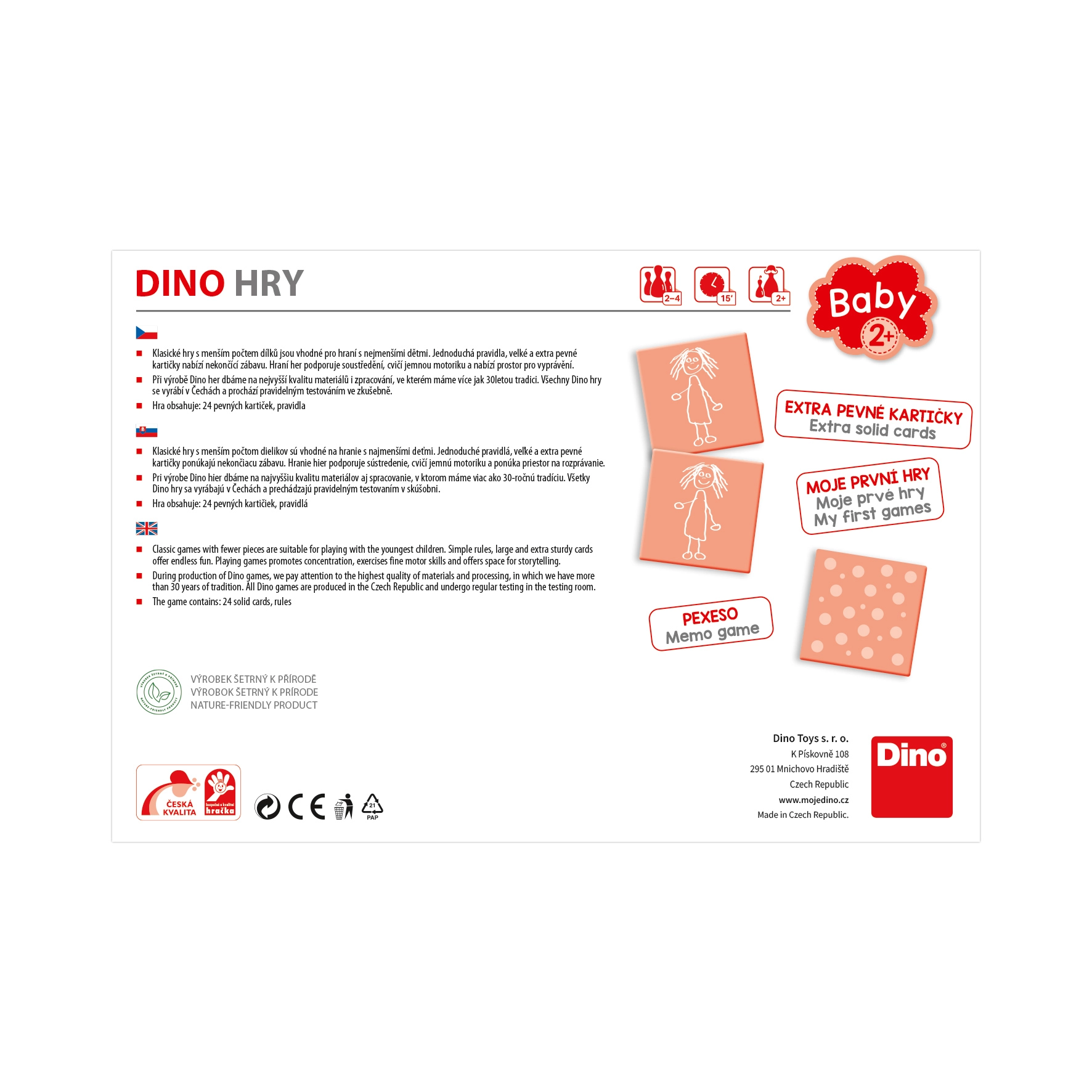 En la producción del Pexeso participan reconocidos artistas y diseñadores checos que cuidan la calidad y la creatividad. La empresa Dino Toys garantiza calidad checa y una larga tradición en juegos y juguetes.