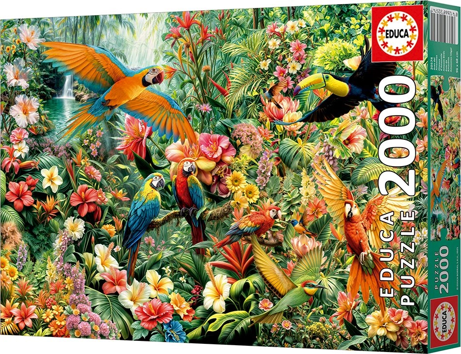 Descubre la belleza de la selva tropical con el rompecabezas EDUCA «Pájaros del Amazonas» de 2000 piezas. El paquete incluye pegamento FIX PUZZLE gratis y, una vez montado, obtendrás una imagen impresionante de aprox. 96 × 68 cm.