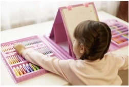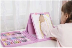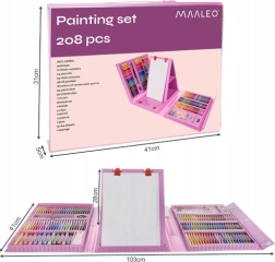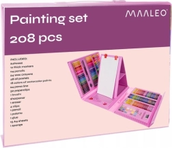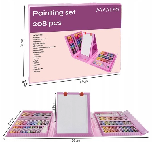 Descubre la alegría de crear con este completo set de pintura. Gracias a sus 208 piezas dispones de una amplia gama de herramientas, incluyendo 12 rotuladores gruesos, 24 lápices de colores, 24 ceras y 48 pasteles al óleo. Todo está ordenado cuidadosamente en un práctico maletín que garantiza organización y fácil acceso.