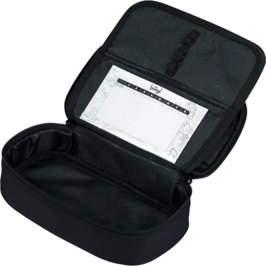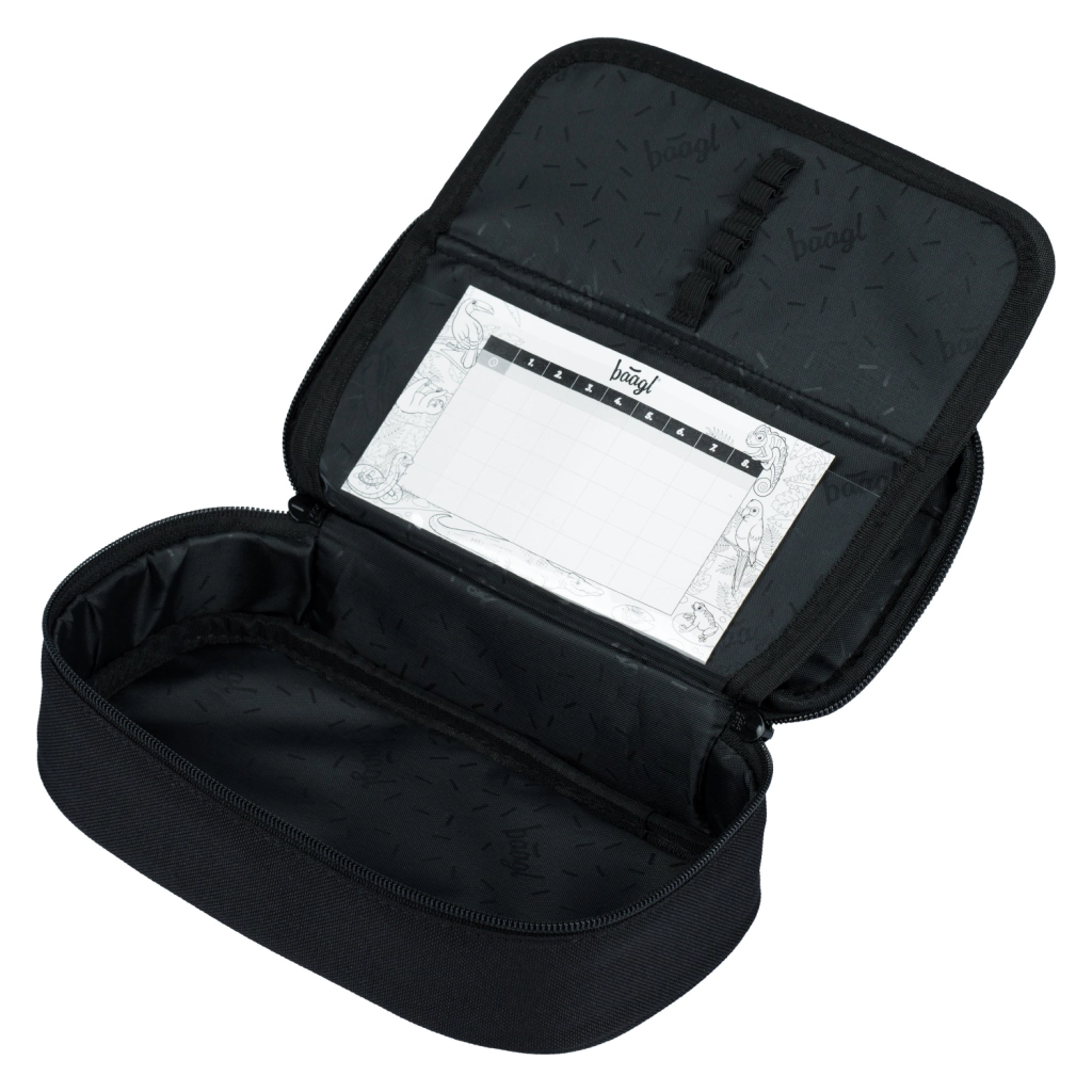 El estuche ETUE DARKNESS es rígido, con solapa abatible, bolsillo interior con cremallera y bolsillo para el horario. Fabricado con material reciclado, con cierres YKK, se entrega sin contenido. La bolsa DARKNESS es ideal para calzado y pequeños objetos, hecha de material resistente y lavable, con cierre mediante cordones firmes que permiten también llevarla a la espalda.