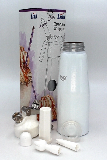 Descubra la comodidad de preparar nata en casa con la botella LISS Home Chef de 0,5 l. El cuerpo de aluminio con laca blanca y el acabado interior garantizan una larga vida útil y un mantenimiento fácil. La cantidad recomendada de nata de 250–400 ml ofrece una esponjosidad óptima; el volumen máximo de la mezcla es de 500 ml.