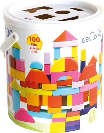 Este completo set de bloques de madera en nuevos colores ofrece a los niños infinitas posibilidades para construir torres, puentes y estructuras sencillas. El práctico embalaje en un cubo de cartón facilita el guardado y el transporte, mientras que la tapa con aberturas funciona como clasificador para ejercitar la lógica y la paciencia.