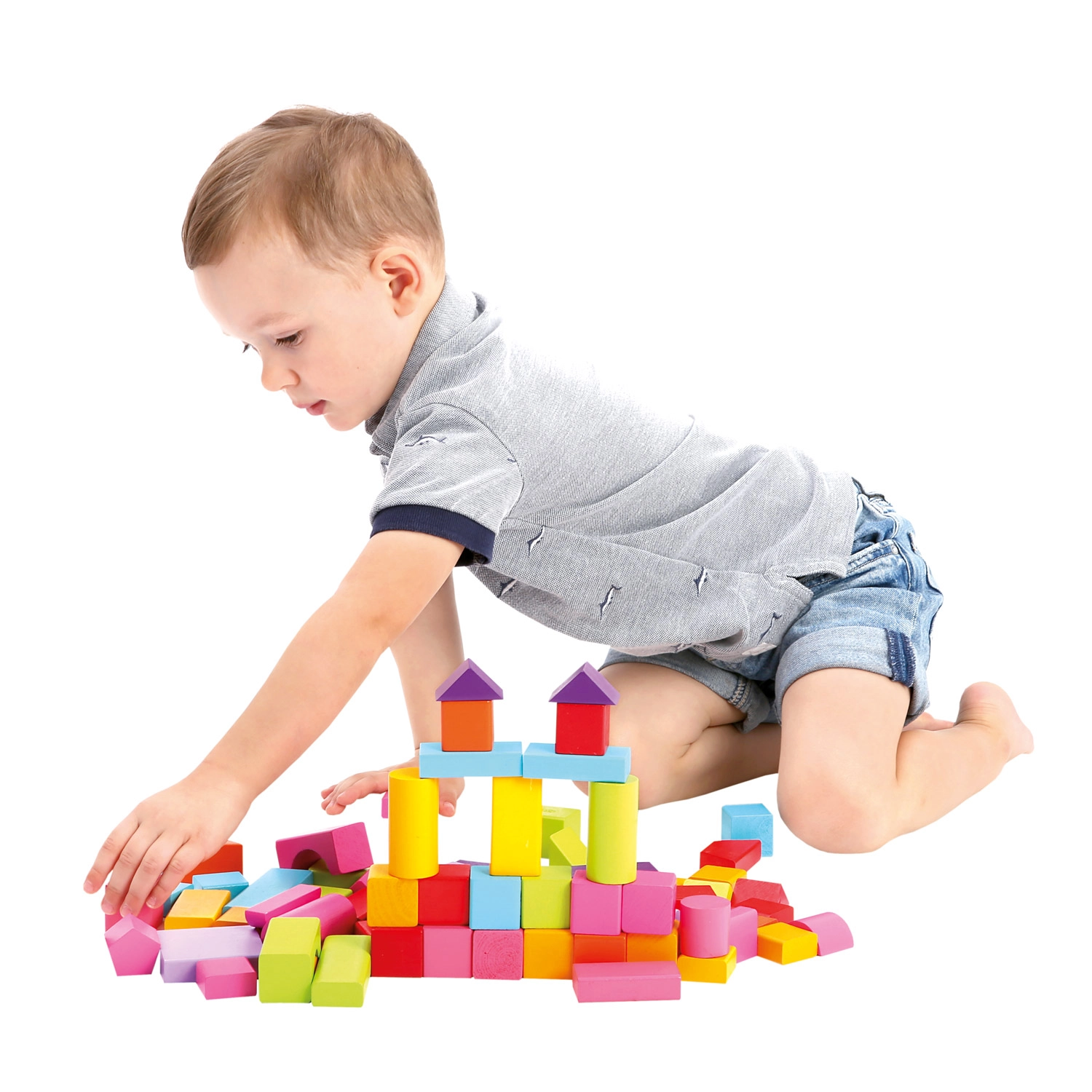 Ideal para niños a partir de 1 año: los bloques tienen una superficie agradablemente lisa, colores vivos y seguros, y una variada gama de formas, desde cubos y prismas hasta cilindros, arcos y triángulos. Jugar con bloques favorece el desarrollo de la percepción espacial, la creatividad y la coordinación mano-ojo.