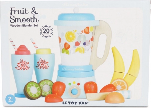 Mezcla para los peques una ración saludable de diversión con la licuadora de batidos de madera LE TOY VAN. El set incluye un batidor clásico con jarra desmontable, 6 piezas de fruta para cortar con velcro, un cuchillo de madera y 2 vasos con pajitas. Fabricado con madera certificada FSC, pintado a mano con pinturas no tóxicas al agua y premiado por su calidad y valor de juego.