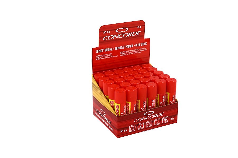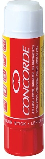 Práctica y fiable barra de pegamento CONCORDE de 8 g para el uso diario en la oficina, la escuela y el hogar. Pegado rápido y limpio de papel, cartón, telas y fotografías, no se seca, es segura para niños y fácil de lavar. Calidad comprobada: probado, pega hasta 5 años.