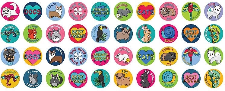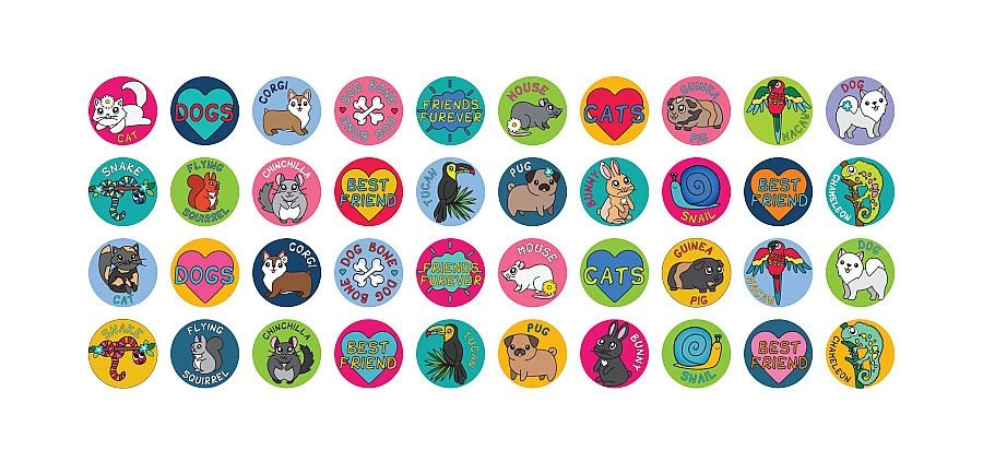 Ilustraciones coloridas de perritos, gatitos y otros animalitos encantarán a niños y adultos, y darán un toque juguetón a cualquier proyecto.