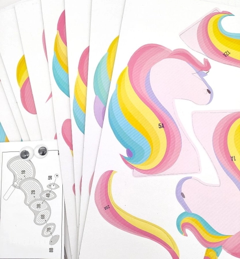 Descubre la magia de crear con la maqueta 3D de unicornio de cartón de alta calidad. Gracias a las piezas impresas y numeradas, incluso los principiantes podrán montar el modelo: solo hace falta pegamento, un poco de paciencia y ganas de crear. El resultado es una robusta y colorida cabeza 3D de unicornio que destaca tanto en el dormitorio infantil como en el escritorio.